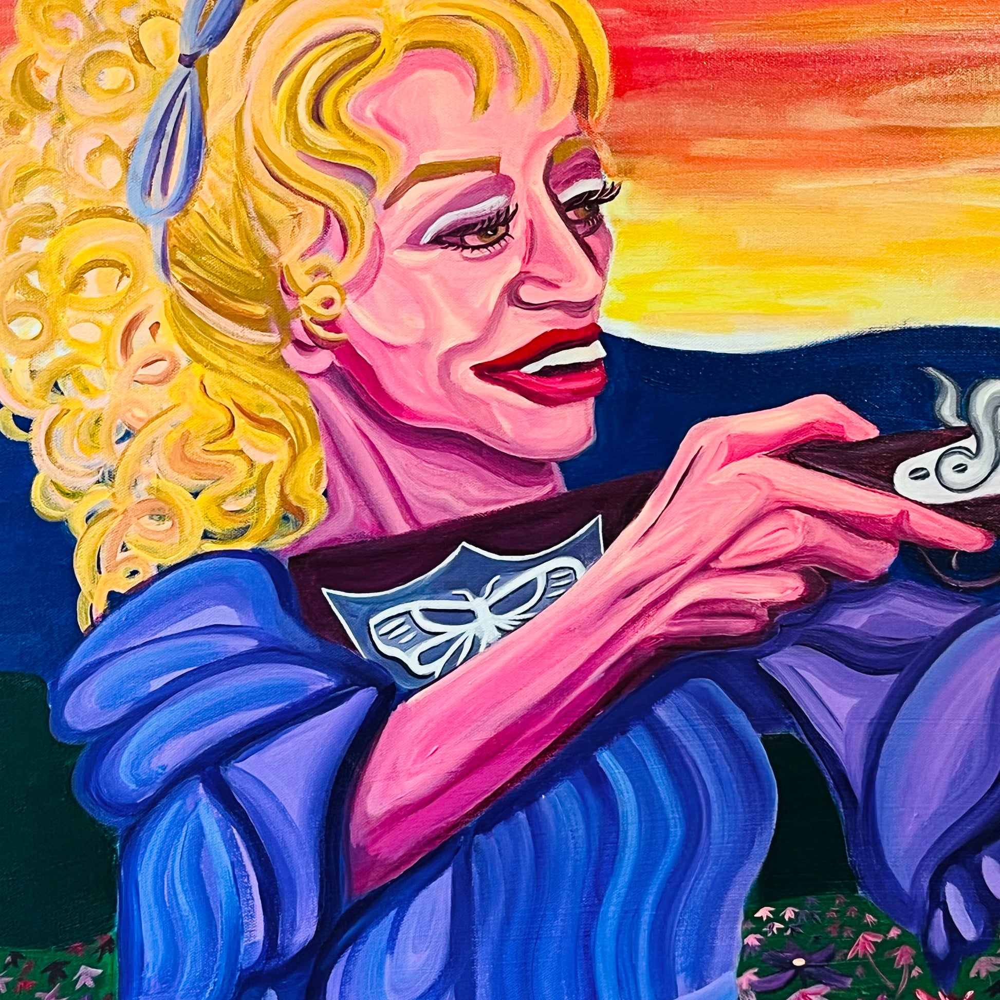 Kate Lilly is a self-taught painter living and working in Knightdale, NC. Their practice includes trial and error, making a mess, and "I'll know It when I see It." Kate is creatively driven by their opposing desires to be both Known and Mysterious. They believe that compelling art is about conflict. By balancing thematically dark images with a bright and and exciting palette, Kate centers conflict throughout their body of work. Kate is inspired by Human Hands (form and function), Solitude, Indulgence, Purity, Helplessness, Roadkill, Man vs Nature, and the United States Highway System.