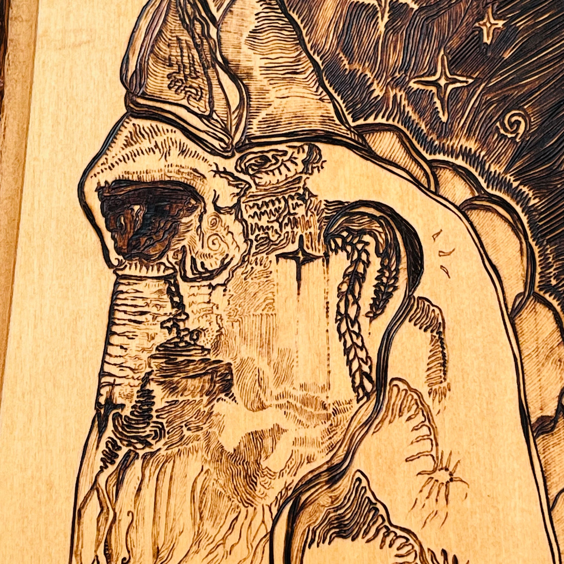 A flower and veggie farmer by trade, their woodburned drawings are influenced by the desire to capture the beauty of that chaotic profession. Even the humidity. To provide movement within stillness. To illustrate pictures you want to live inside of. To remind you how good and important it is to come home.